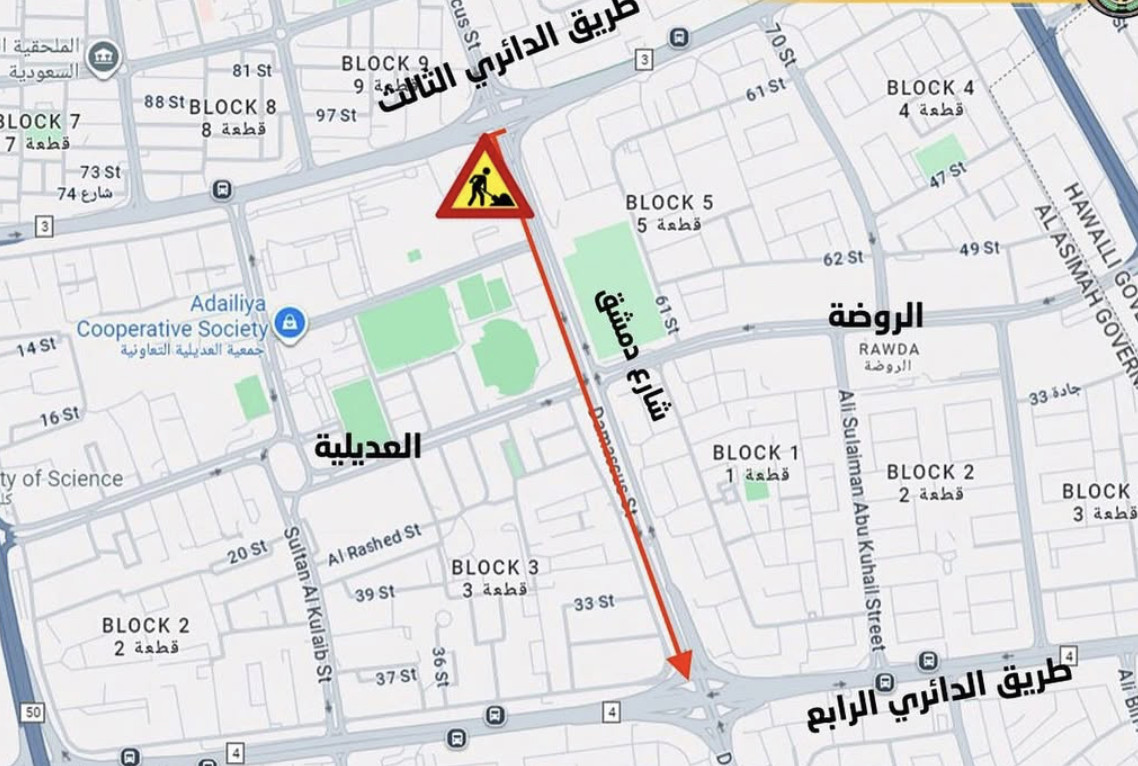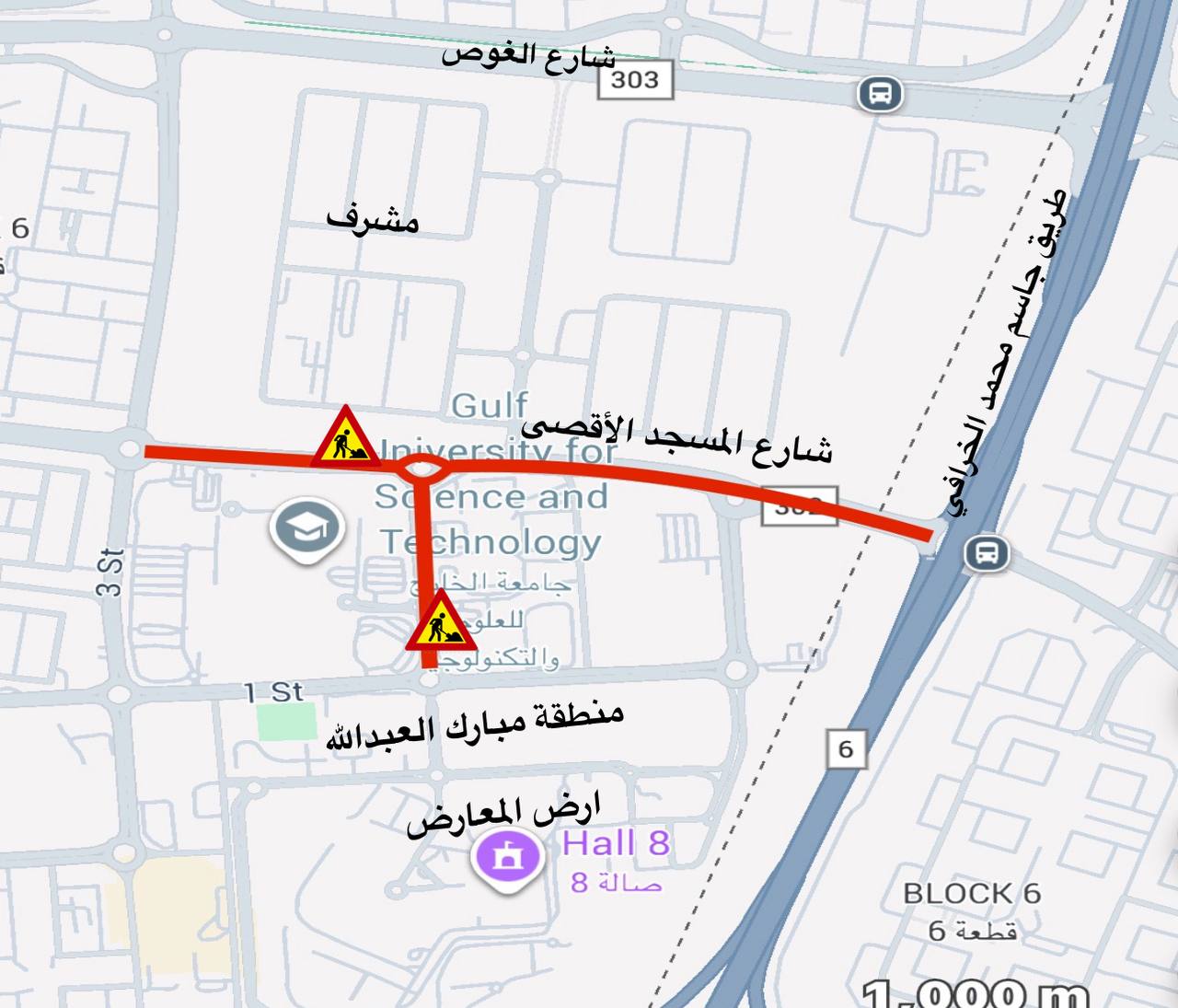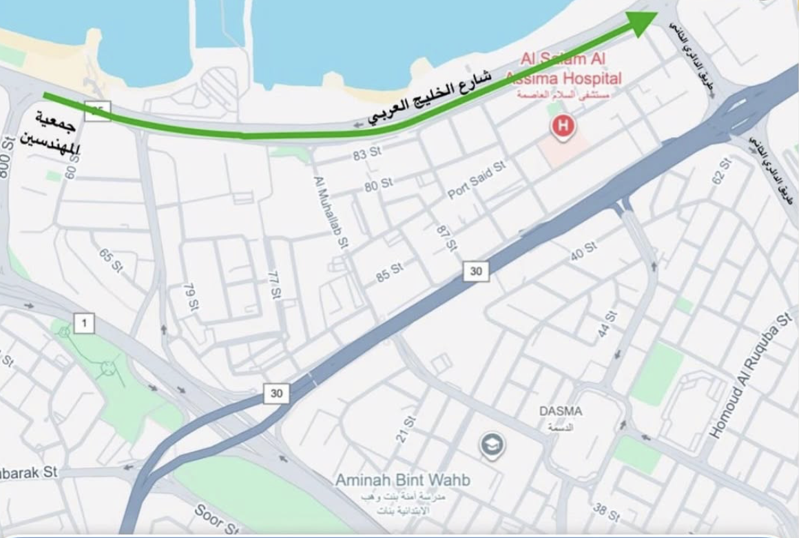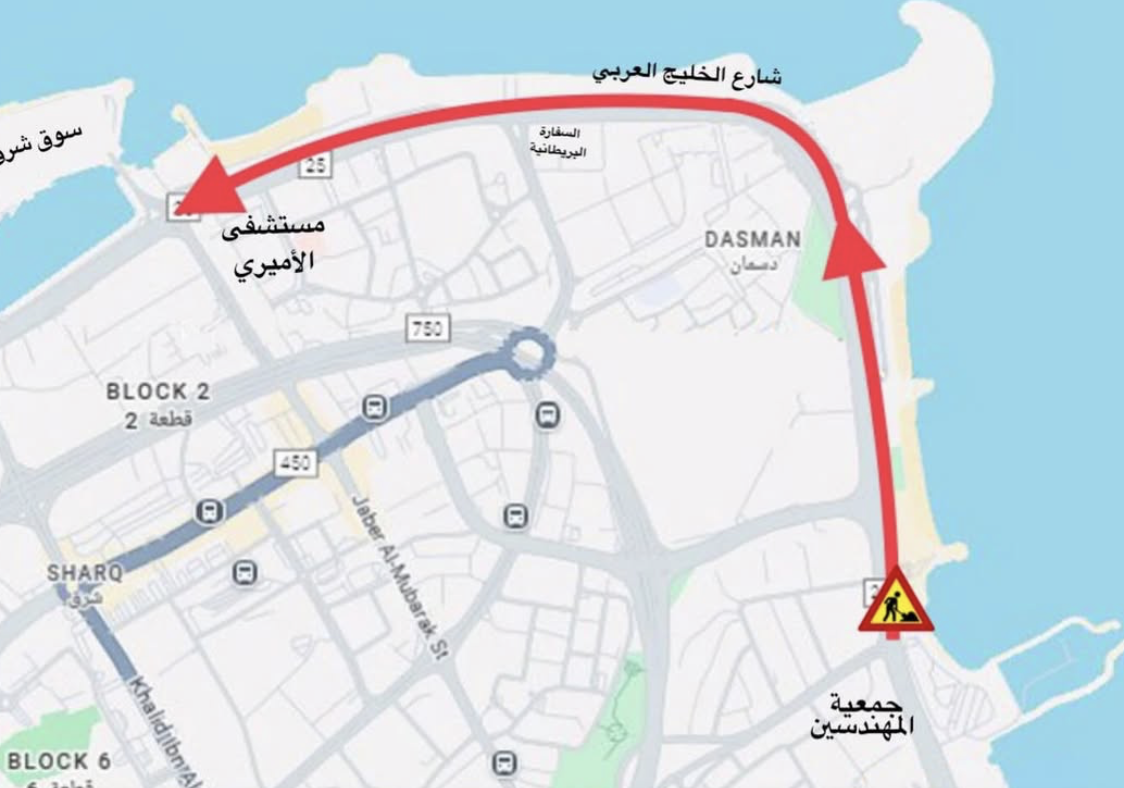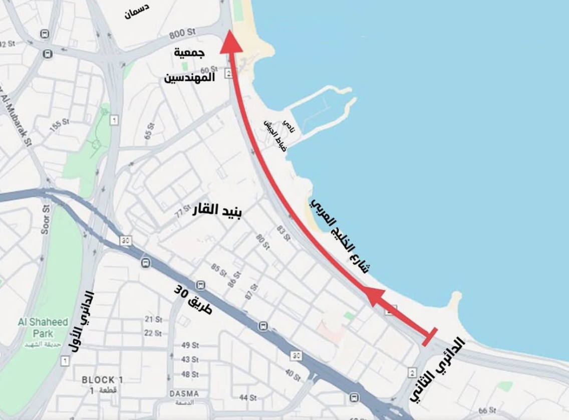 إغلاق كلي لشارع الخليج العربي من تقاطع جمعية المهندسين حتى تقاطع مستشفى الأميري