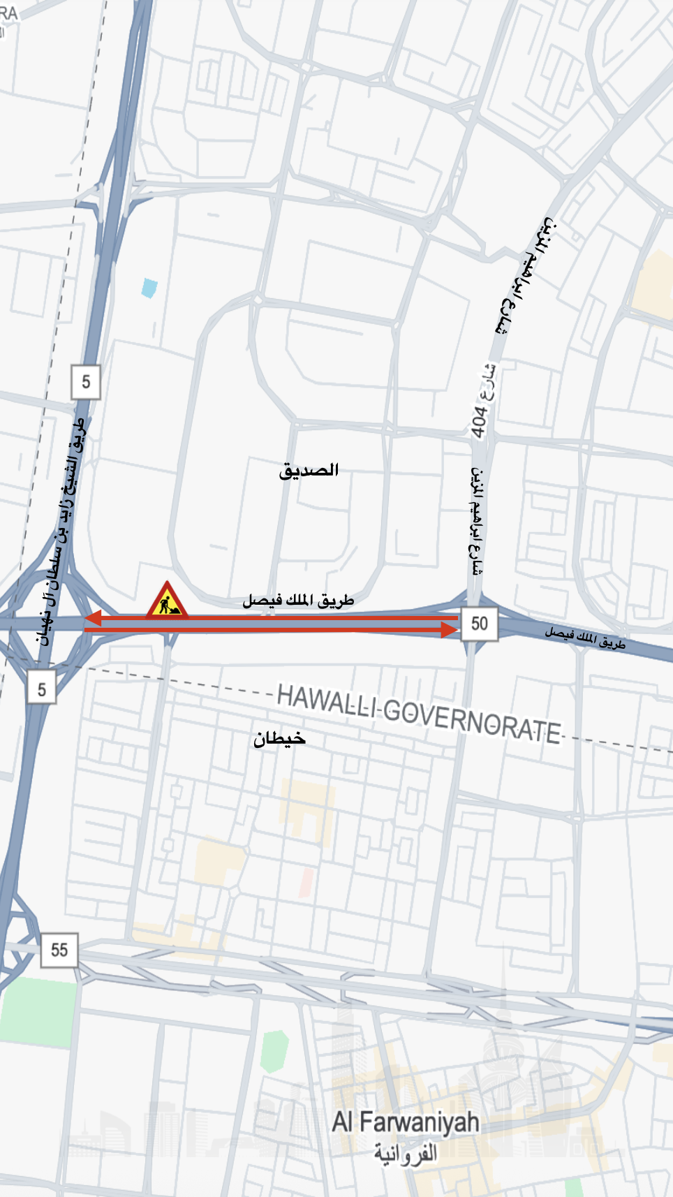 اغلاق الحارة اليسرى السريعة على طريق الملك فيصل 50 باتجاه مدينة الكويت