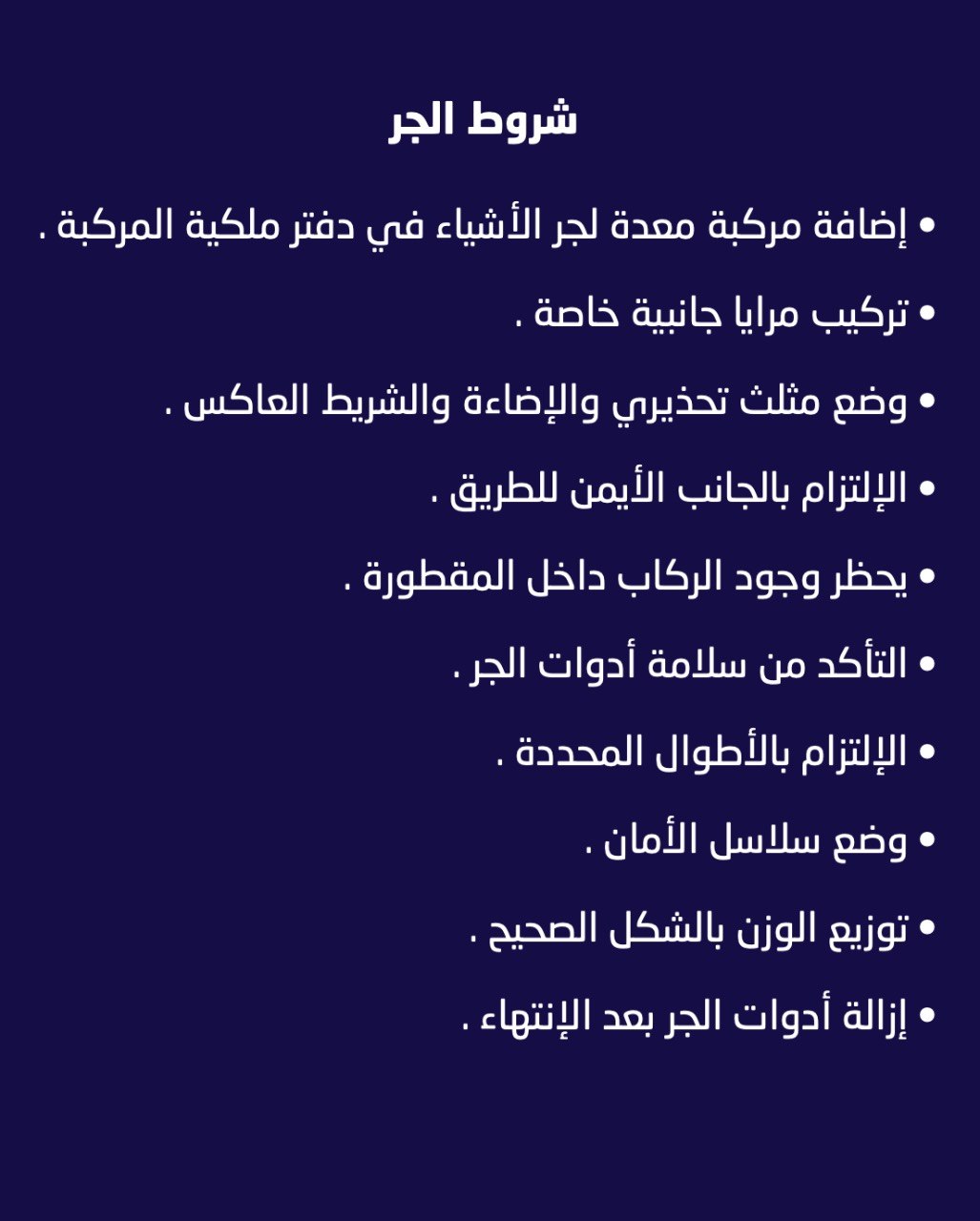 في إطار جهودها المستمرة لتطوير الخدمات المرورية ورفع مستوى الأداء وتسهيل إجراءات المراجعين، تعلن الإدارة العامة للمرور عن بدء استقبال معاملات إضافة المركبات المعدّة للجر إلى إجازة تسير المركبة، وذلك اعتباراً من يوم الاثنين الموافق 19 يناير 2026، في جميع أقسام الفحص الفني بجميع المحافظات.