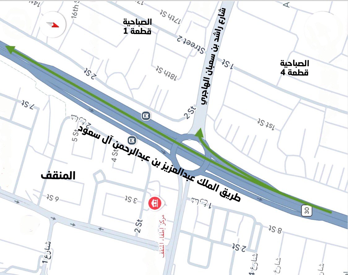 افتتاح الطريق الخدمي والالتفاف الرأسي من شارع دمشق إلى الدائري الخامس باتجاه السالمية