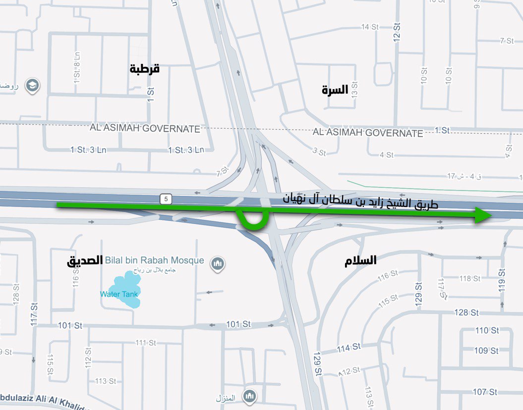 إغلاق جزء من شارع محمد بن القاسم من تقاطع الحميدي حتى تقاطع شيخان بإتجاه الدائري الرابع