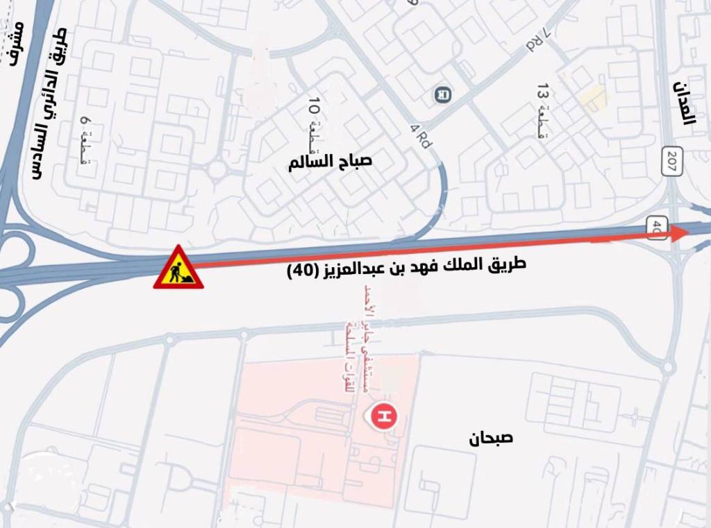 إغلاق جزئي لعدة حارات على طريق الفحيحيل لمدة 15 يوماً لاستكمال أعمال الصيانة