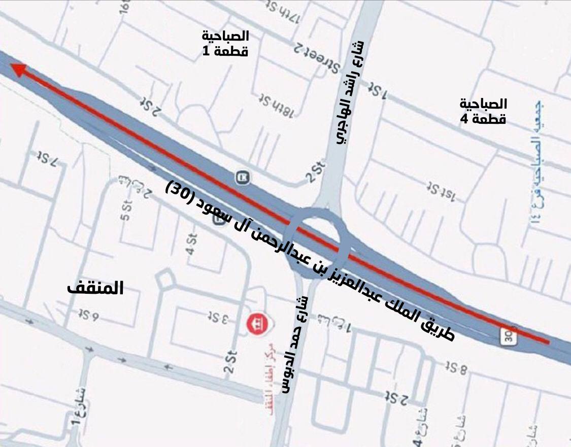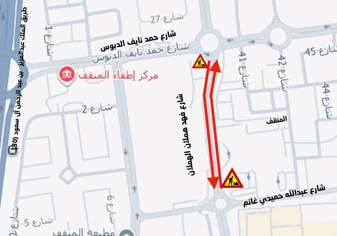 إغلاق جزء من شارع محمد بن القاسم من تقاطع الحميدي حتى تقاطع شيخان بإتجاه الدائري الرابع