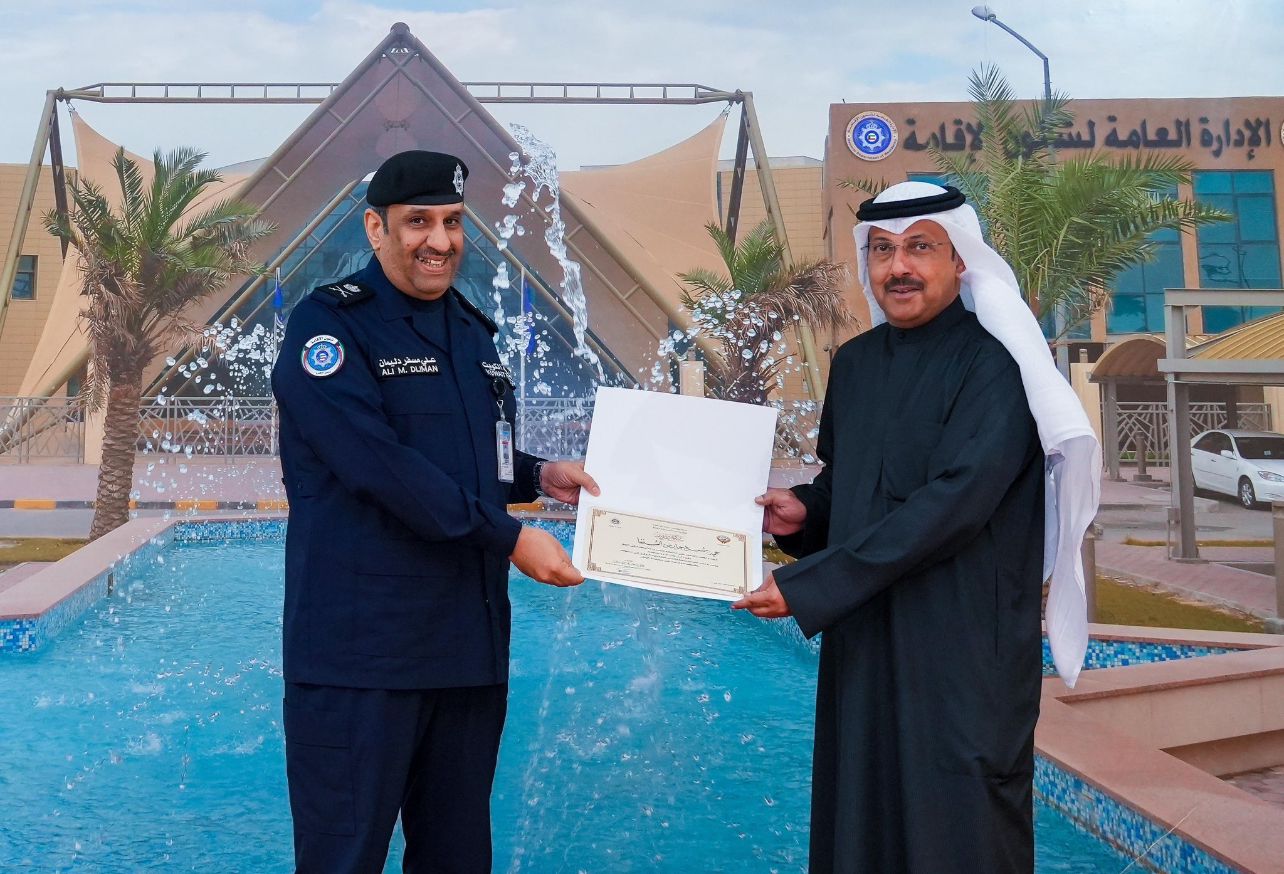 في إطار سياسة وزارة الداخلية لتكريم المتميزين من منتسبيها وتعزيز روح الإخلاص في العمل ليكون حافزاً على بذل المزيد من الجهد، قام وكيل وزارة الداخلية المساعد لشؤون الإقامة والجنسية، اللواء علي مسفر العدواني، وبحضور المدير العام للإدارة العامة لمباحث شؤون الإقامة، العميد مشعل عايض الشنفا، ومساعد المدير العام للإدارة العامة لمباحث شؤون الإقامة، العميد عبدالله حضيري الهملان، بتكريم كوكبة من الكفاءات الأمنية المتميزة من ضباط وأفراد الإدارة العامة لمباحث شؤون الإقامة، لأدائهم المتميز في عملهم بما يرسخ قواعد العمل الأمني في البلاد.