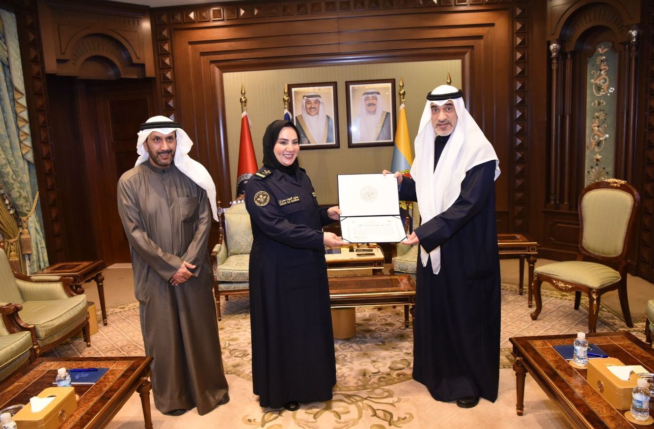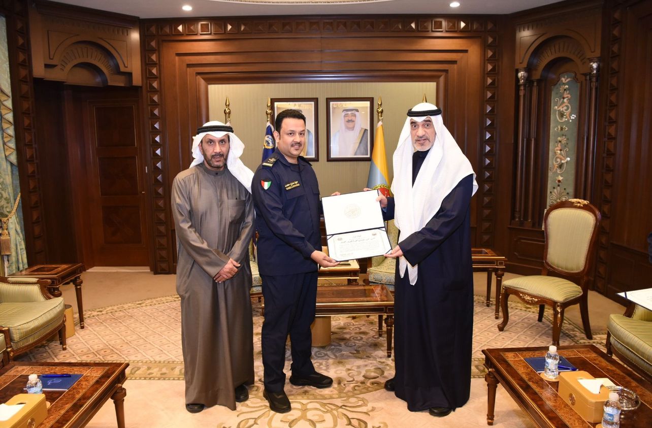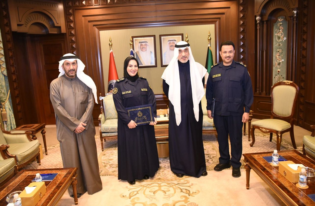كرم معالي رئيس مجلس الوزراء بالإنابة ووزير الداخلية الشيخ فهد يوسف سعود الصباح، المفتشين الجمركيين حميد علوي الظفيري وعنود خليف العنزي، بحضور مدير عام الإدارة العامة للجمارك مطلق تركي العنزي، تقديرًا لجهودهما في إحباط محاولة تهريب أموال بطريقة غير مشروعة عبر منفذ العبدلي.