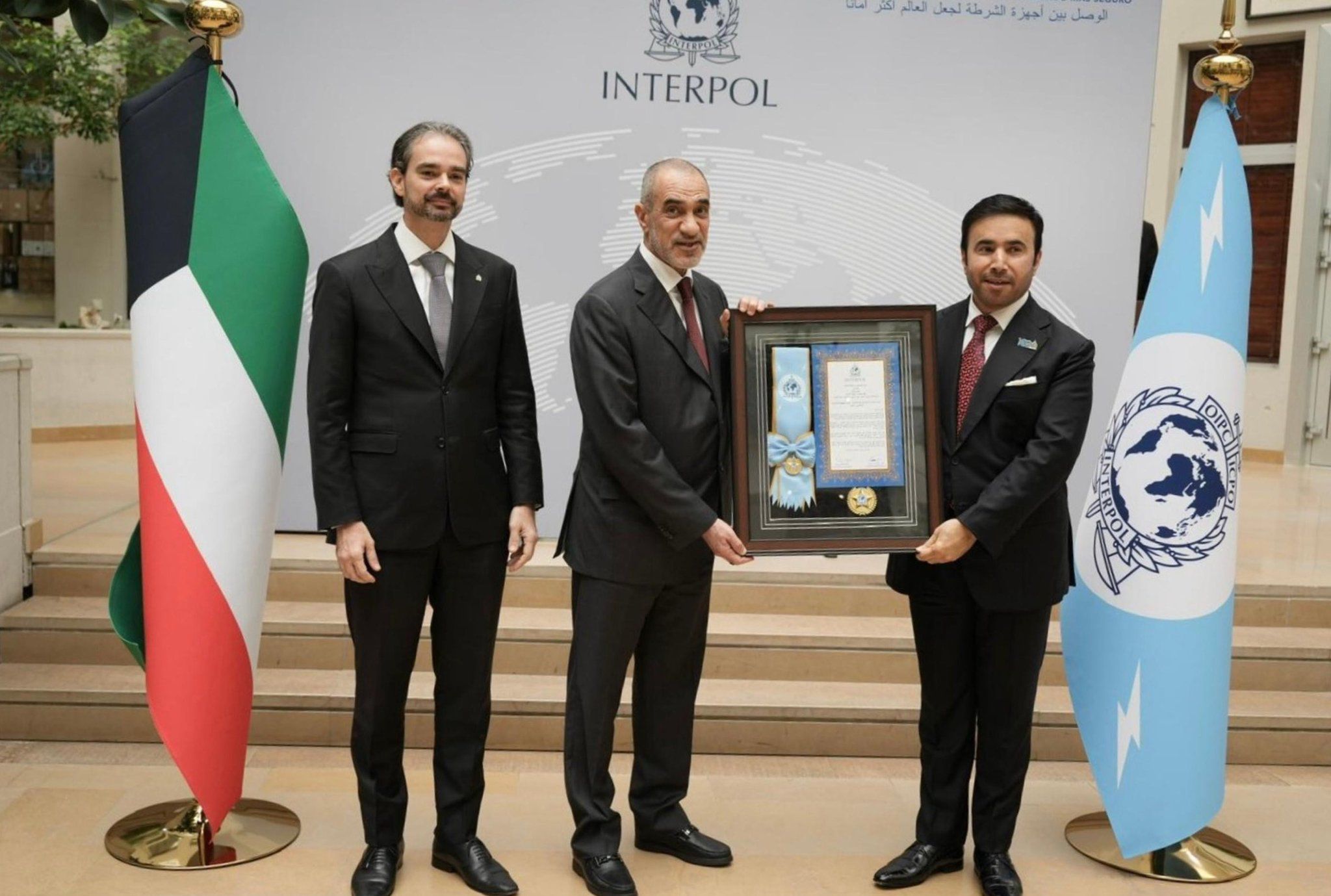 وفي ختام اللقاء، قام رئيس منظمة الشرطة الجنائية الدولية الإنتربول اللواء الدكتور أحمد ناصر الريسي بتقليد معالي النائب الأول لرئيس مجلس الوزراء ووزير الداخلية وسام الإنتربول من الطبقة العليا، تقديراً لدور دولة الكويت وجهودها في دعم المنظمة وتعزيز التعاون الأمني الدولي.