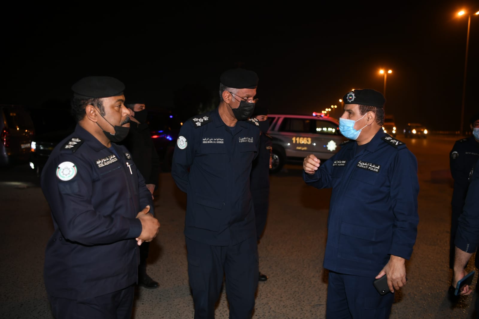 وفي بداية الجولة نقل الفريق النهام لرجال الأمن تحيات وتقدير معالي وزير الداخلية الشيخ ثامر علي صباح السالم الصباح، مثمنا الدور الذي يقوم به رجال الأمن، مشيداً بتواجدهم على رأس عملهم بعيداً عن أهلهم وذويهم ويقظتهم الدائمة لخدمة الوطن والحفاظ على أمنه والتضحية من أجل رفعة شأنه .
