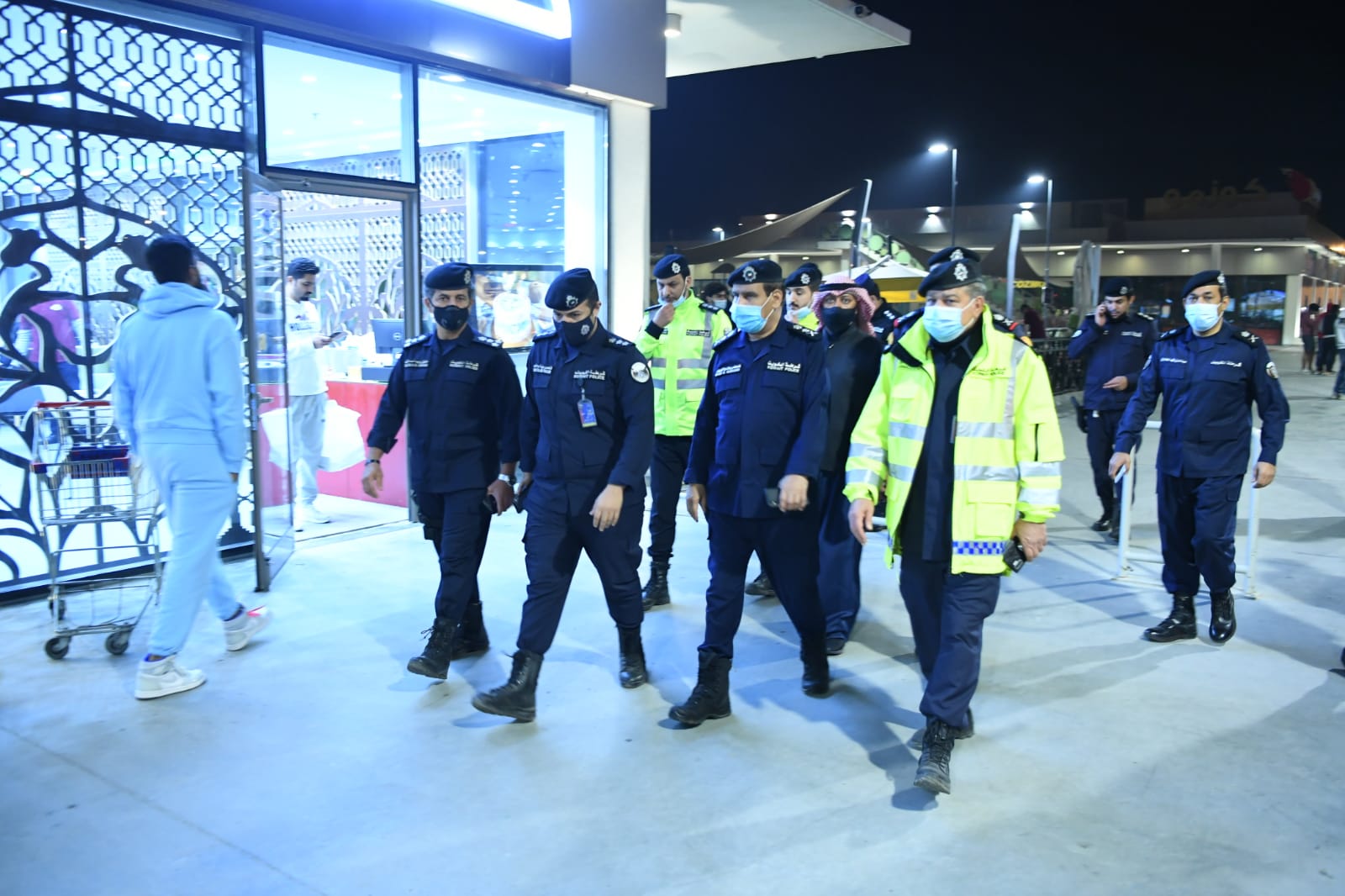 ثم قام الفريق النهام بجولة أمنية تفقدية في مدينة صباح الأحمد البحرية منطقة خيران للإطلاع على الإجراءات الأمنية والتفتيشية وزار عددا من المجمعات التجارية في المنطقة للوقوف على جاهزية رجال الأمن ويقظتهم.