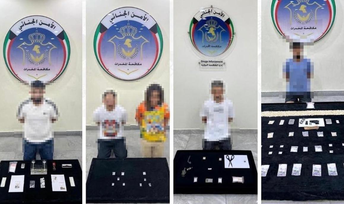 قطاع الامن الجنائي يتمكن من ضبط (5) متهمين (مواطن وشخصين من الجنسية الفلبينية وشخصين من المقيمين بصورة غير قانونية) وبحوزتهم (40) حبة لاريكا و(10) جرام من الكيميكال و(60) جرام من الشبو و(7000) حبة كبتاجون و(5) جرام من مادة الهيروين و(3) اقراص من الزنكس وسلاح ناري.