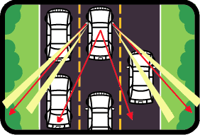 السيارة تنساب بين المرآتين. بعد ذلك يتم
